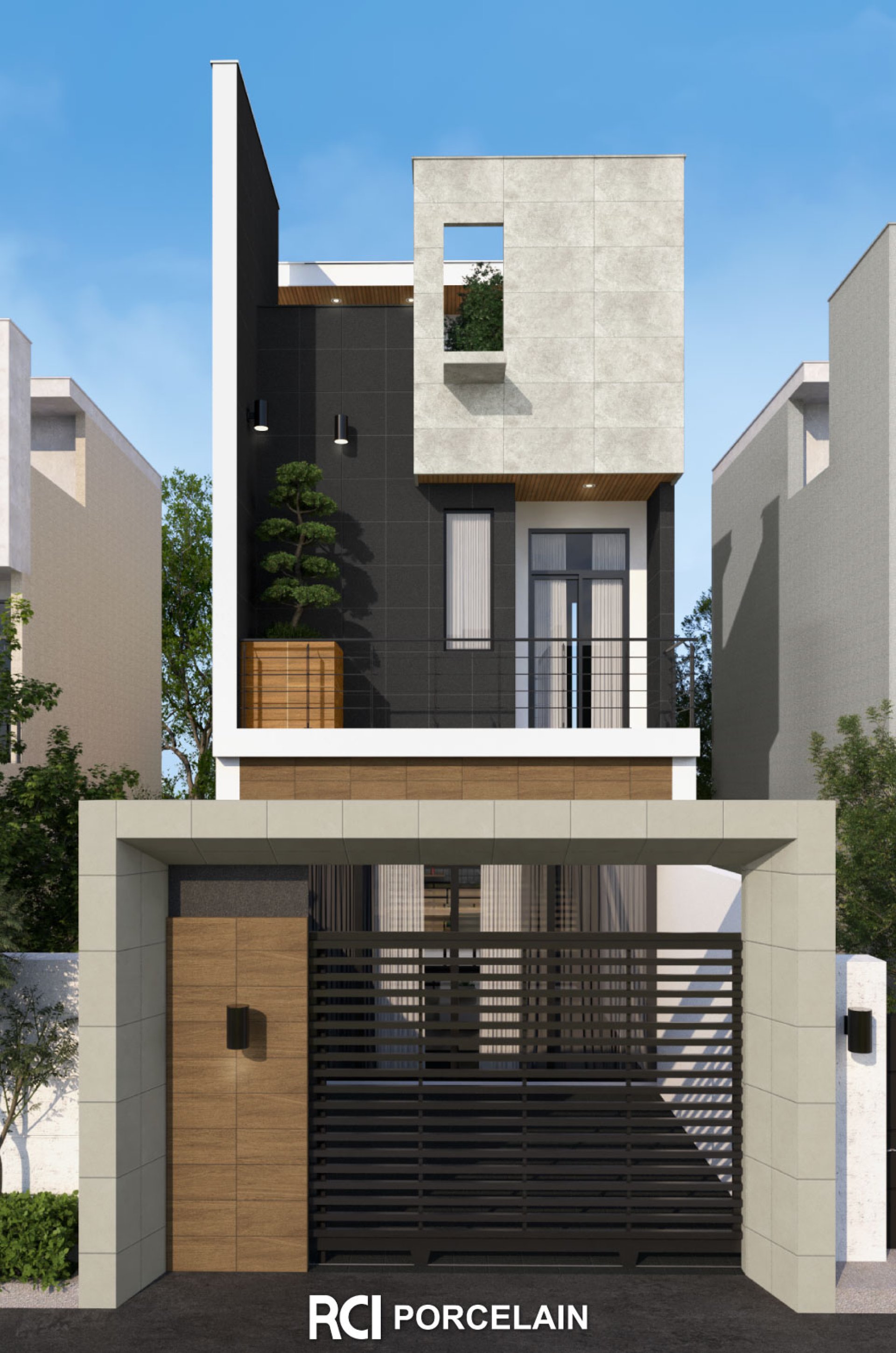 สะกดทุกสายตา ด้วยการออกแบบตัวบ้านให้มีสไตล์โมเดิร์นทันสมัย โดยเลือกใช้วัสดุตกแต่งที่มีดีไซน์สวยงาม คุณภาพสูงและผลิตโดยฝีมือคนไทย อย่างกระเบื้องพอร์ซเลนจากแบรนด์ RCI