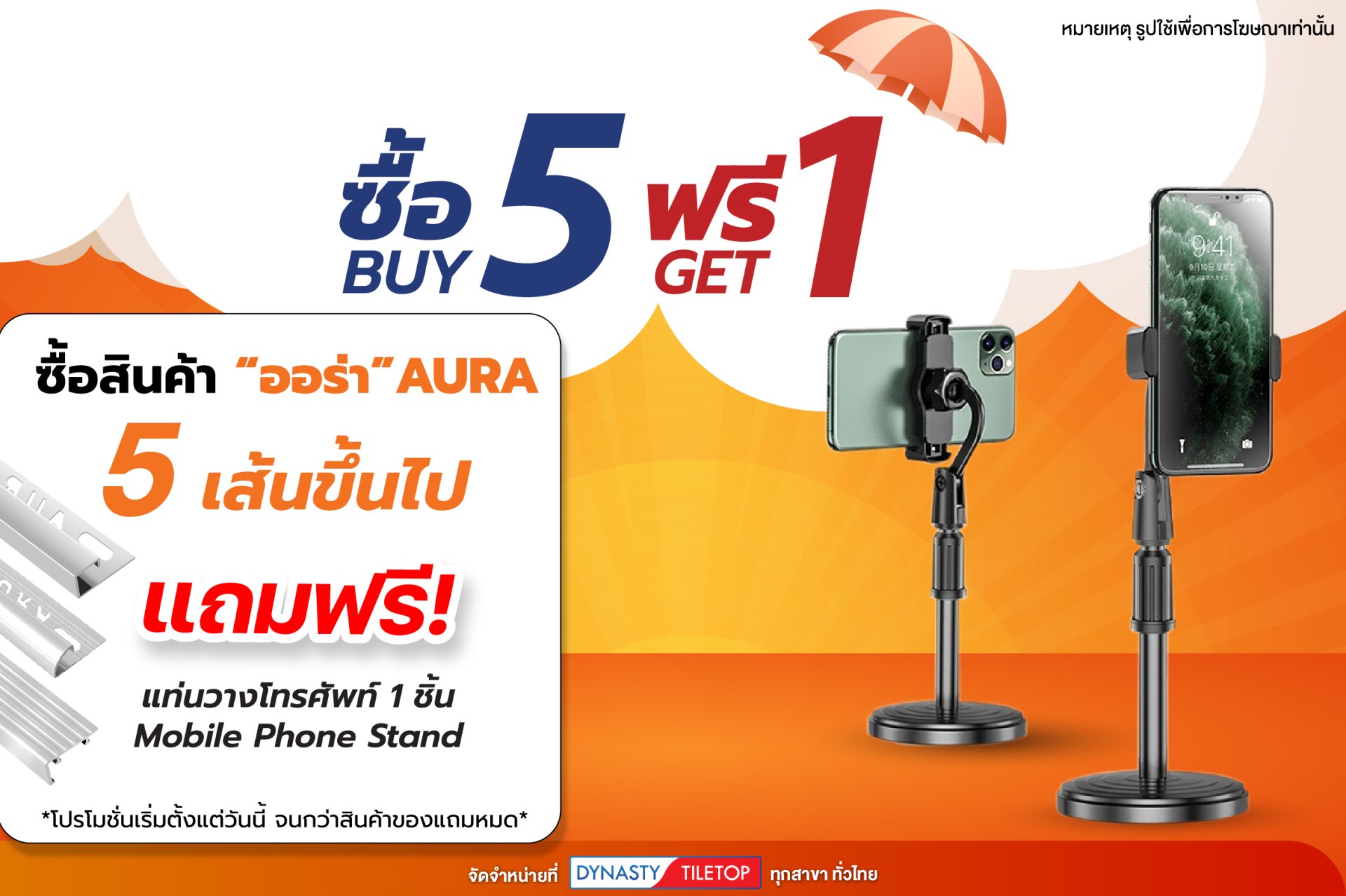 เพียงซื้อคิ้วกระเบื้อง , จมูกบันได หรือกรุยเชิง ตั้งแต่ 5 เส้นขึ้นไป แจกฟรีแท่นวางโทรศัพท์ Mobile Phone Stand 1 ชิ้น ไว้ใช้งานไม่ว่าจะเป็นถ่ายรูปหน้างาน/ถ่ายทอดสด หรืออื่นๆ ช้อปสินค้าแบรนด์ออร่าได้เลยที่ไดนาสตี้ ไทล์ท้อป ทุกสาขา