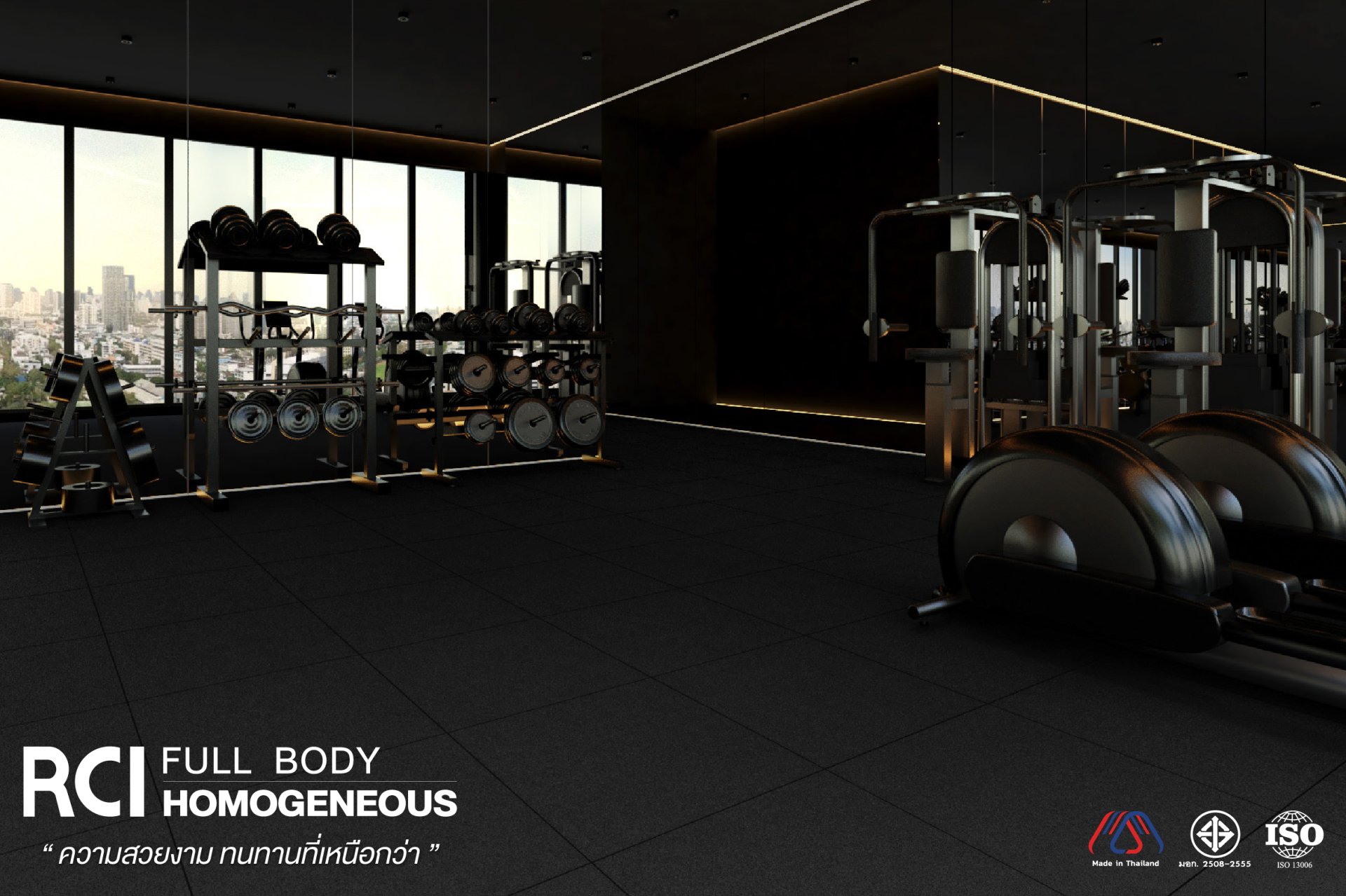 ฟิตเนส พื้นที่ออกกำลังกายที่มีการวางเครื่องเล่นน้ำหนักเยอะเป็นจำนวนมาก การเลือกปูกระเบื้องพอร์ซเลน Full Body จึงเข้ามาตอบโจทย์ด้านความทนทาน และใช้งานยาวนาน