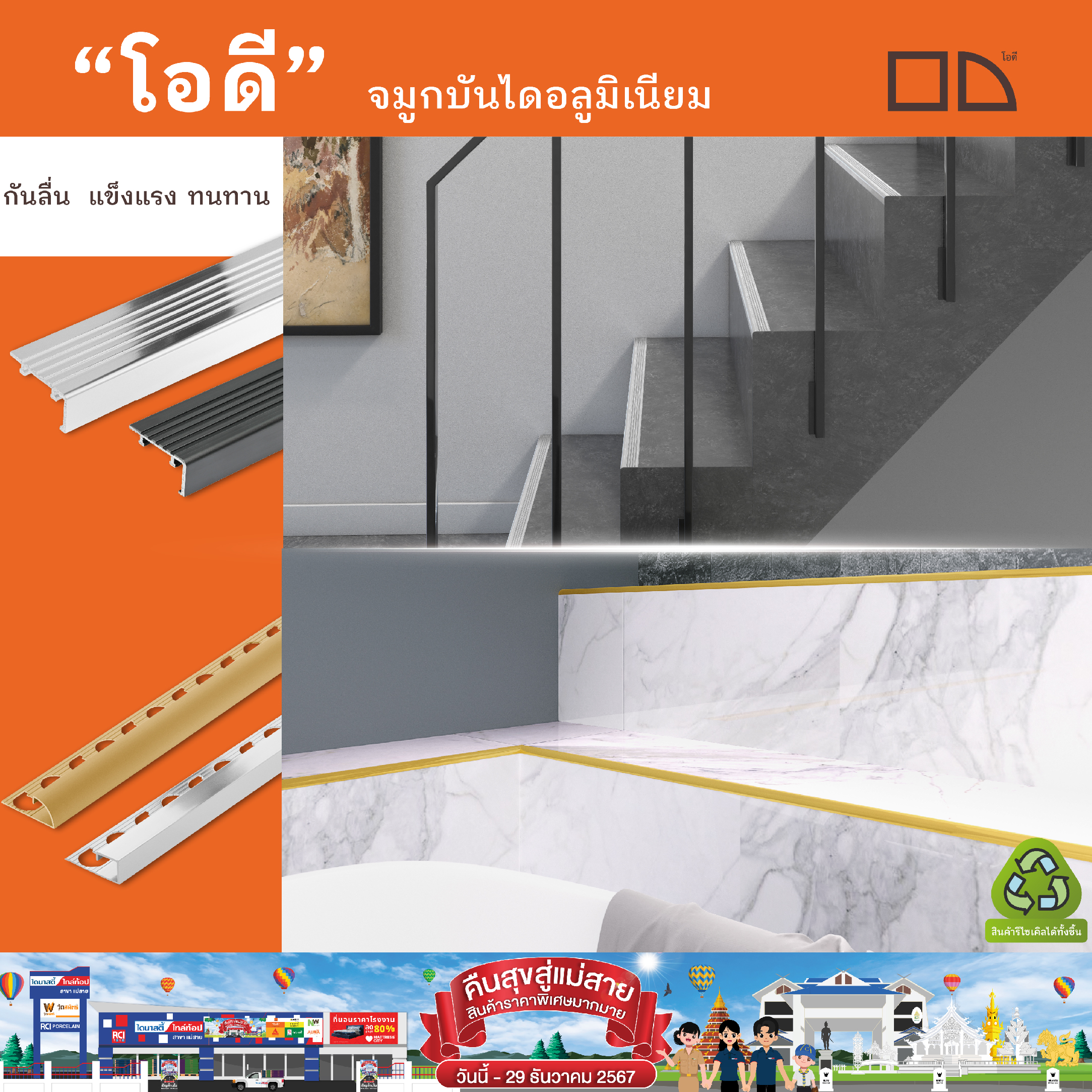 คิ้วอลูมิเนียม และจมูกบันไดอลูมิเนียม สำหรับตกแต่งขอบกระเบื้องเพื่อเพิ่มความโดดเด่น