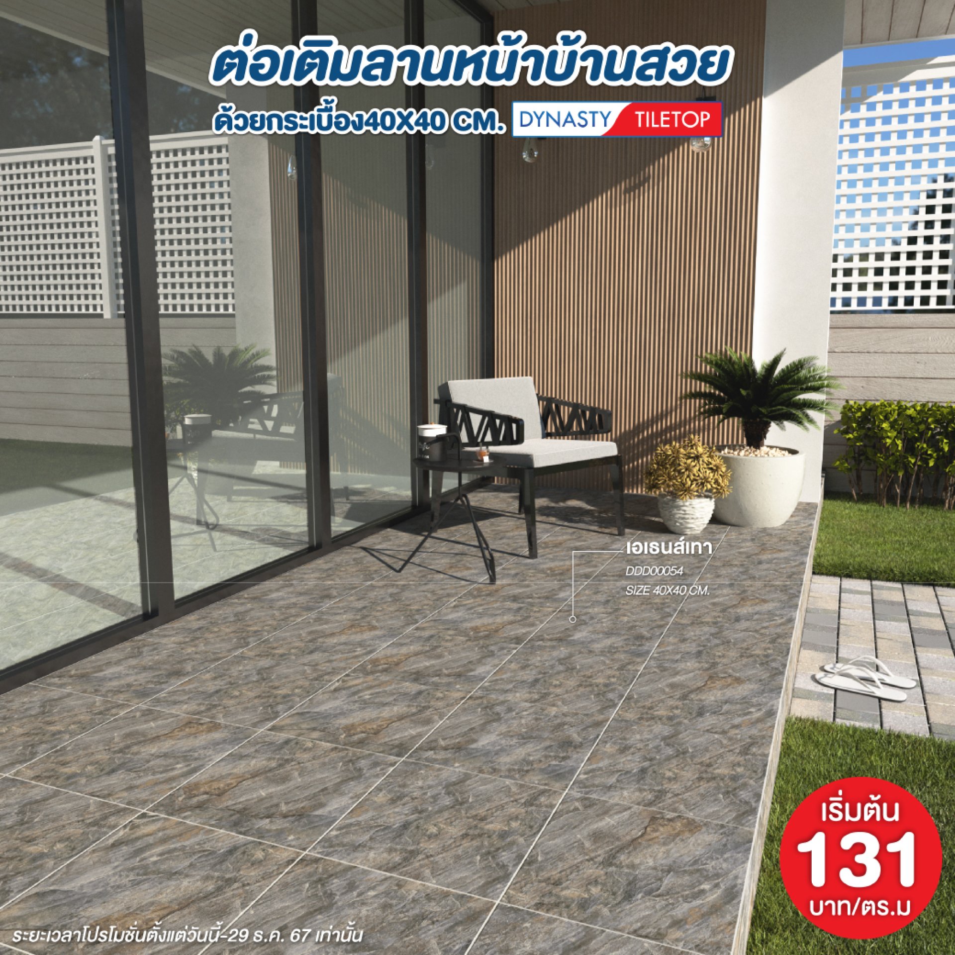 ต่อเติม/ปรับปรุงลานหน้าบ้านใหม่ใช้พื้นที่ไม่เยอะ แนะนำกระเบื้องเซรามิค ขนาด 40X40 CM. เริ่มต้น 131 บาท/ตร.ม. ราคาสบายกระเป๋า สุขใจตลอดทั้งเดือน ส่งท้ายปี ช้อปเลยที่ไดนาสตี้ ไทล์ท้อปทุกสาขา ทั่วไทย