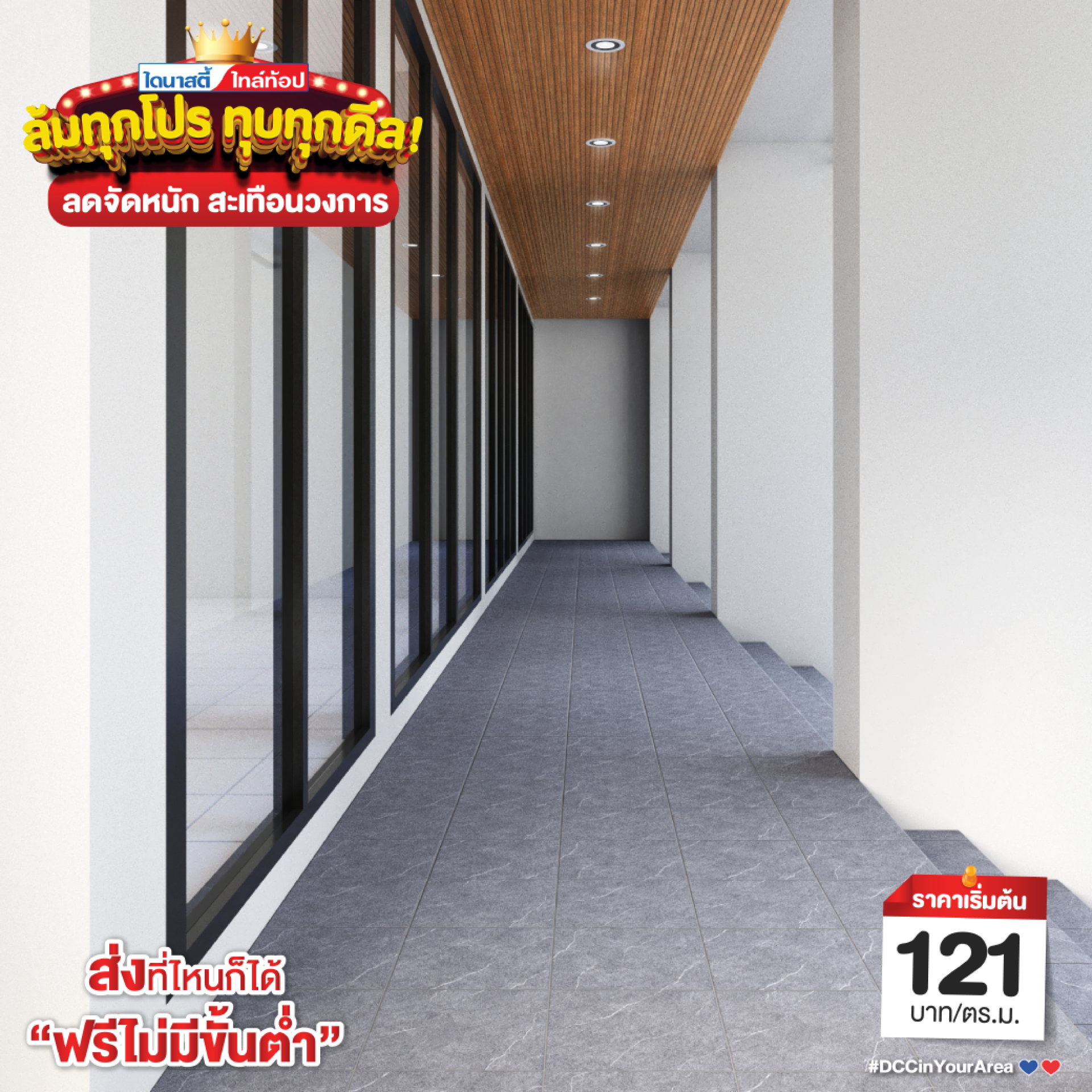 ซ่อมแซม/ปรับปรุงโถงทางเดิน ให้สวยเหมือนใหม่ ด้วยกระเบื้องขนาด 30X30 ซม. พิเศษทุกสุดสัปดาห์ ตลอดเดือนมี.ค. 68 นี้ รีบช้อปเลย ที่ไดนาสตี้ ไทล์ท้อปทุกสาขา ใกล้บ้านคุณ