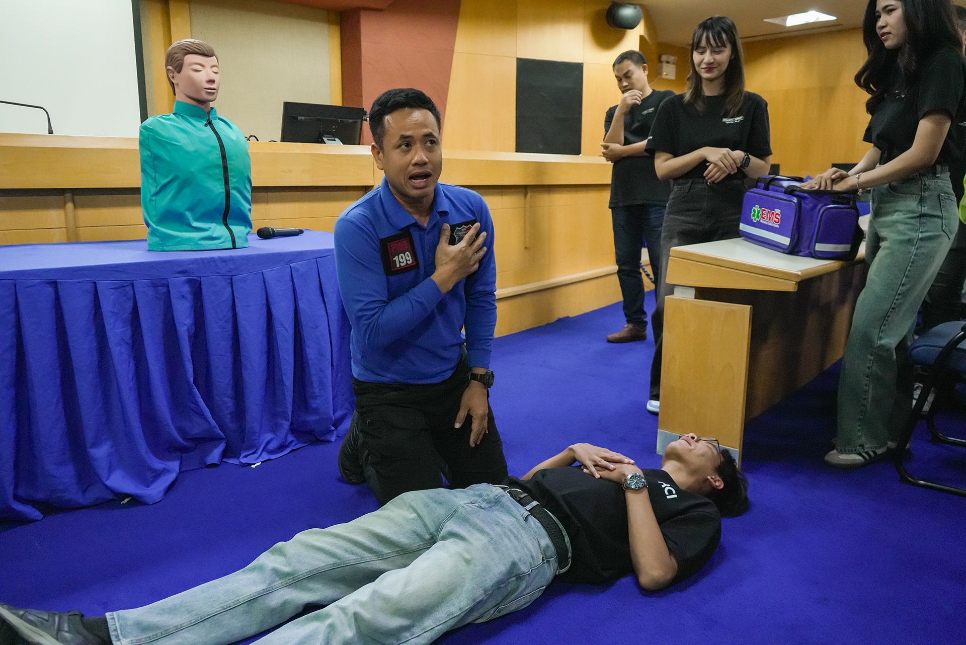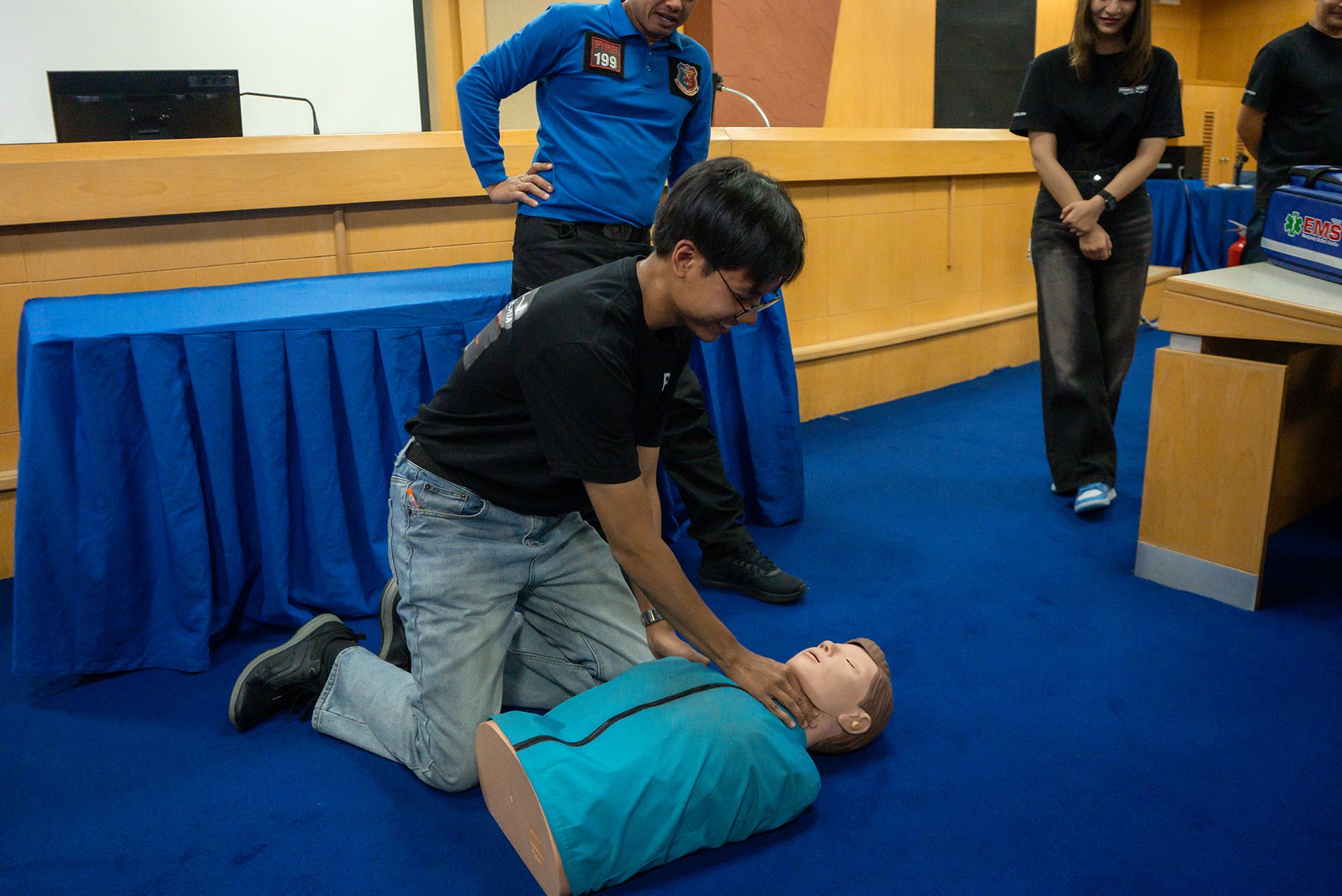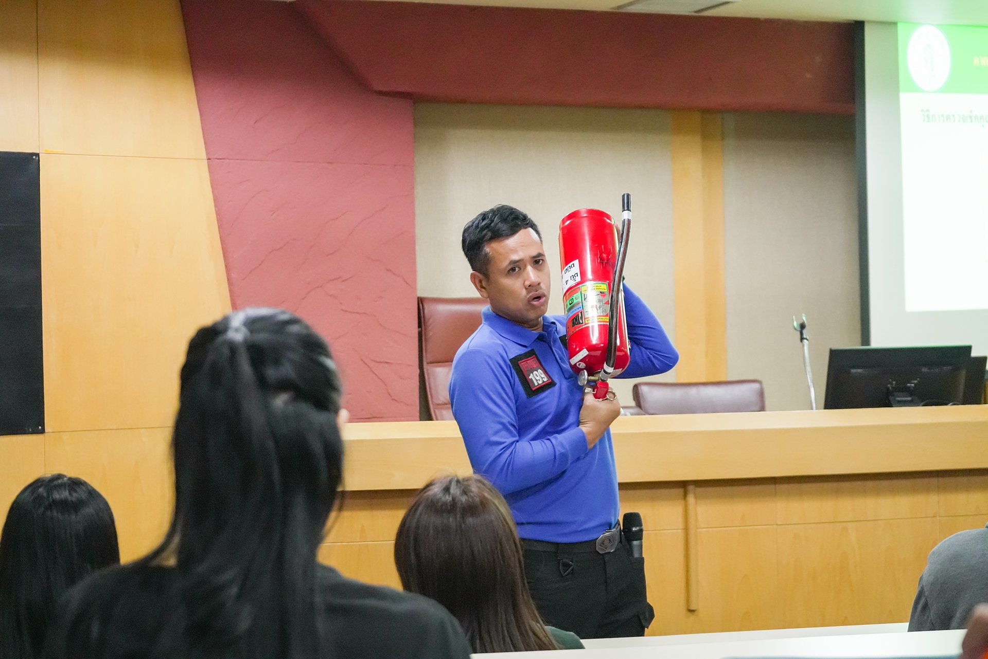 ช่วงเช้า: ภาคทฤษฎี ให้ความรู้เกี่ยวกับทฤษฎีการเกิดเพลิงไหม้, วิธีการดับเพลิง, ถังดับเพลิง, การใช้ถังดับเพลิง, วิธีตรวจเช็คถังดับเพลิง, การปฐมพยาบาลเบื้องต้น ,การเคลื่อนย้ายผู้ป่วย