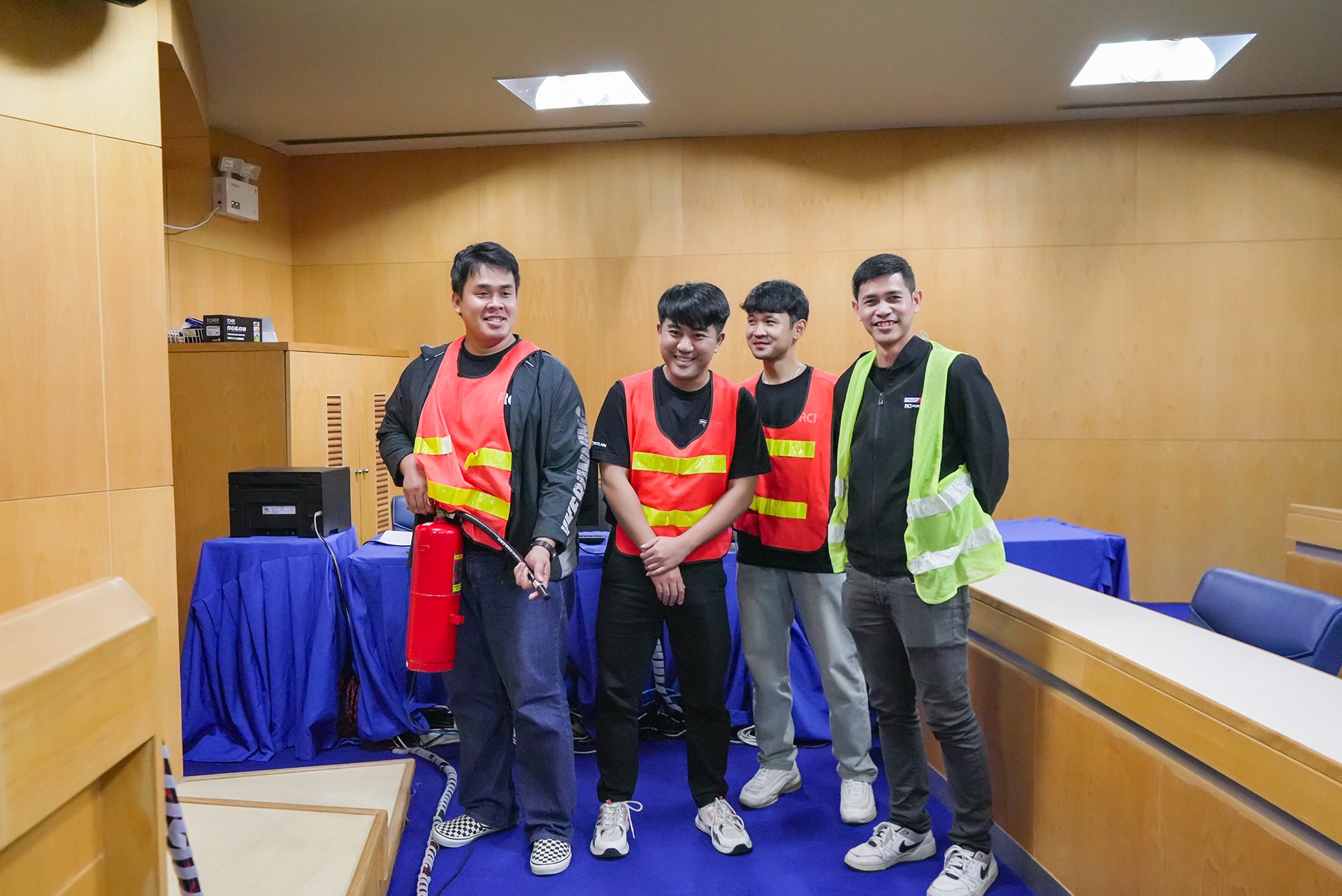 โดยแบ่งการอบรมออกเป็น 2 ช่วง ได้แก่ ภาคทฤษฎีช่วงเช้า เวลา 09.00-12.00 น. และ ภาคปฏิบัติ 13.00-16.00 น. โดยวิทยากรขึ้นทะเบียนจากกรมสวัสดิการคุ้มครองแรงงาน DM-FIRE TRAINING