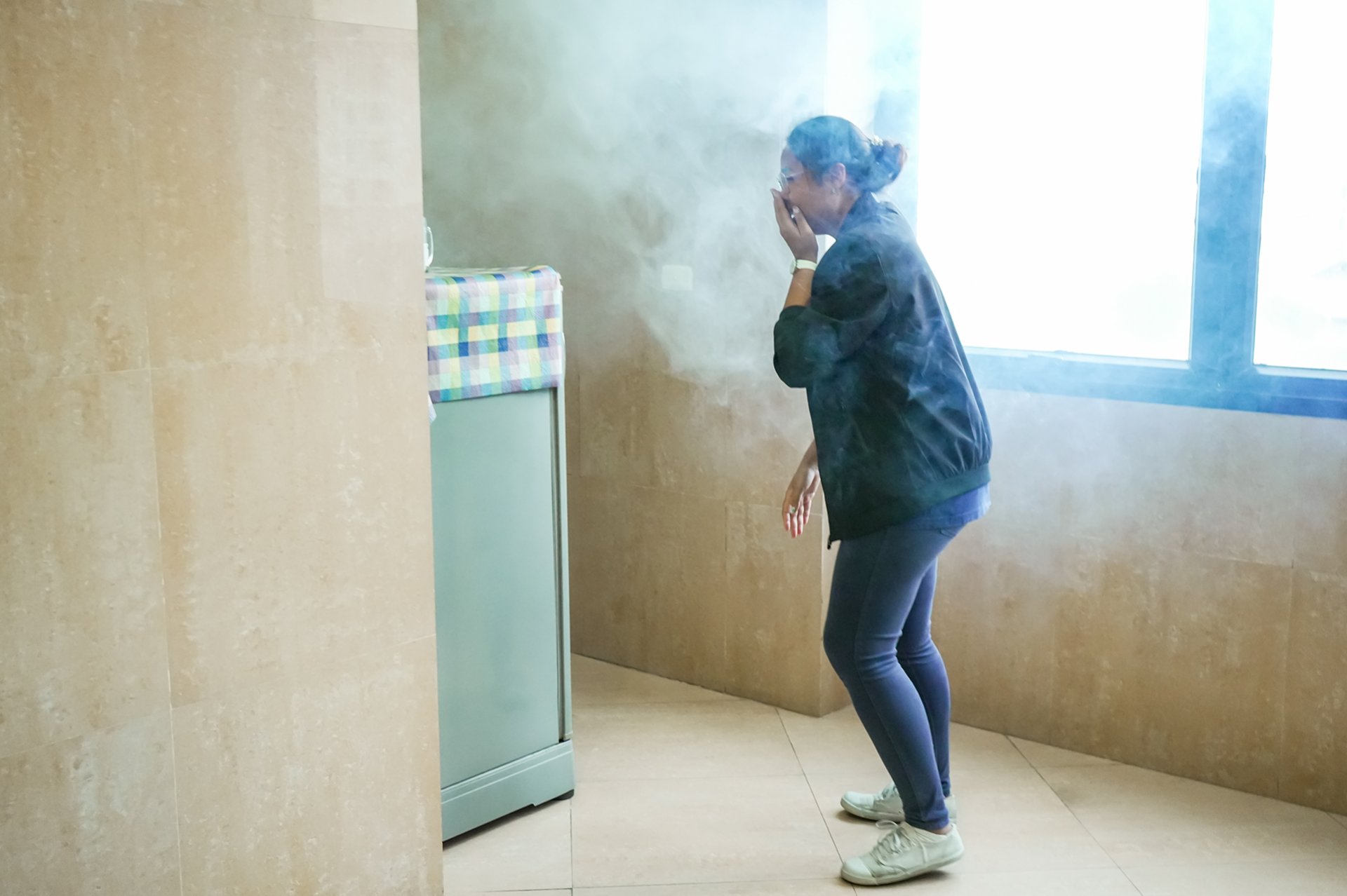 ช่วงบ่าย: ภาคปฏิบัติ ให้ความรู้เกี่ยวกับการฏิบัติเมื่อเกิดไฟไหม้, แก๊สรั่ว, การเอาตัวรอดเมื่อเกิดเพลิงไหม้ และจำลองเหตุการณ์เกิดเพลิงไหม้ เพื่อทดสอบความรู้ ความเข้าใจ ให้ทราบถึงขั้นตอนพื้นฐานในการเอาชีวิตรอด เมื่อต้องตกอยู่ในสถานการณ์จำเป็น