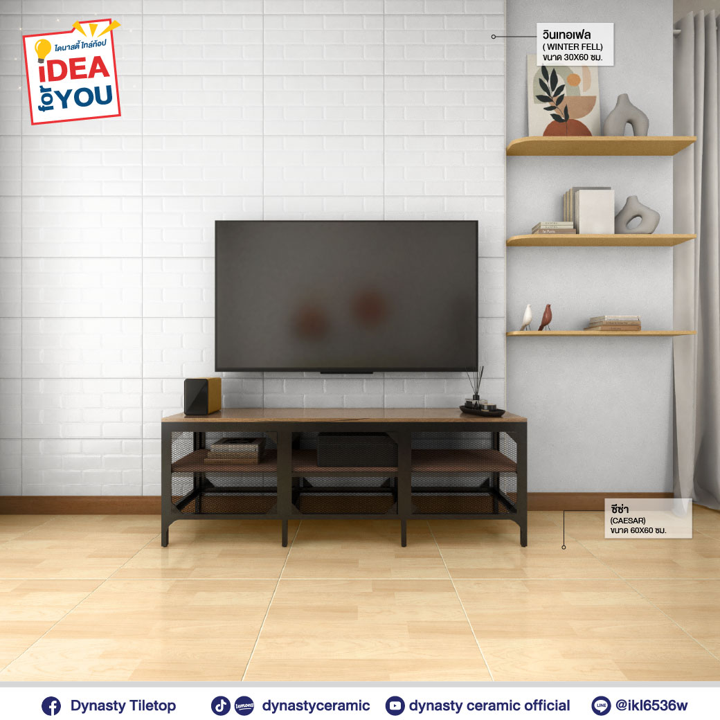 ปูผนังหลังทีวีด้วยกระเบื้อง วินเทอเฟล 30×60 ซม.
