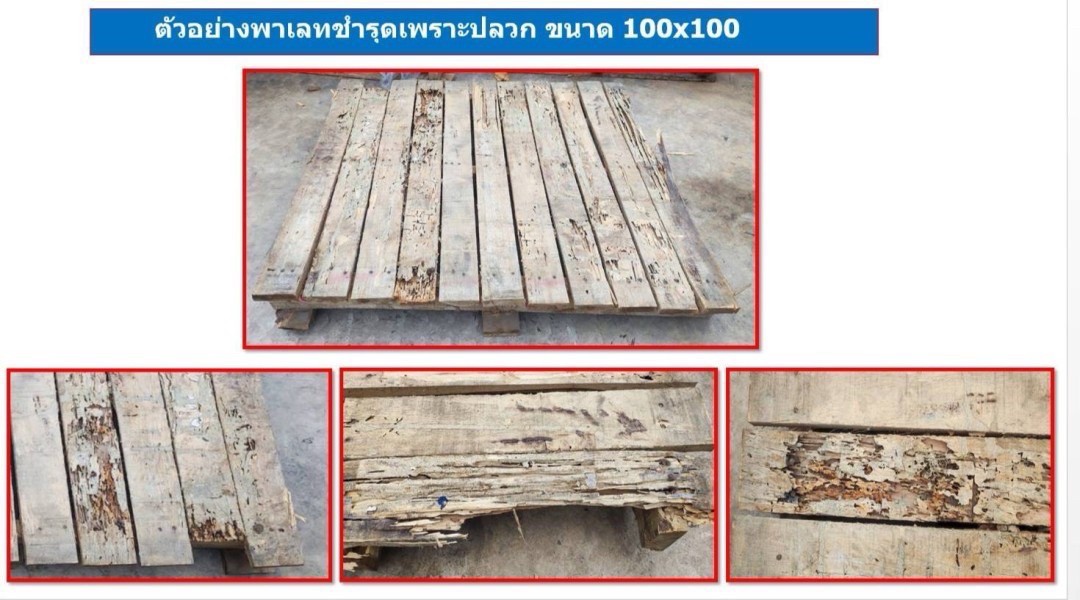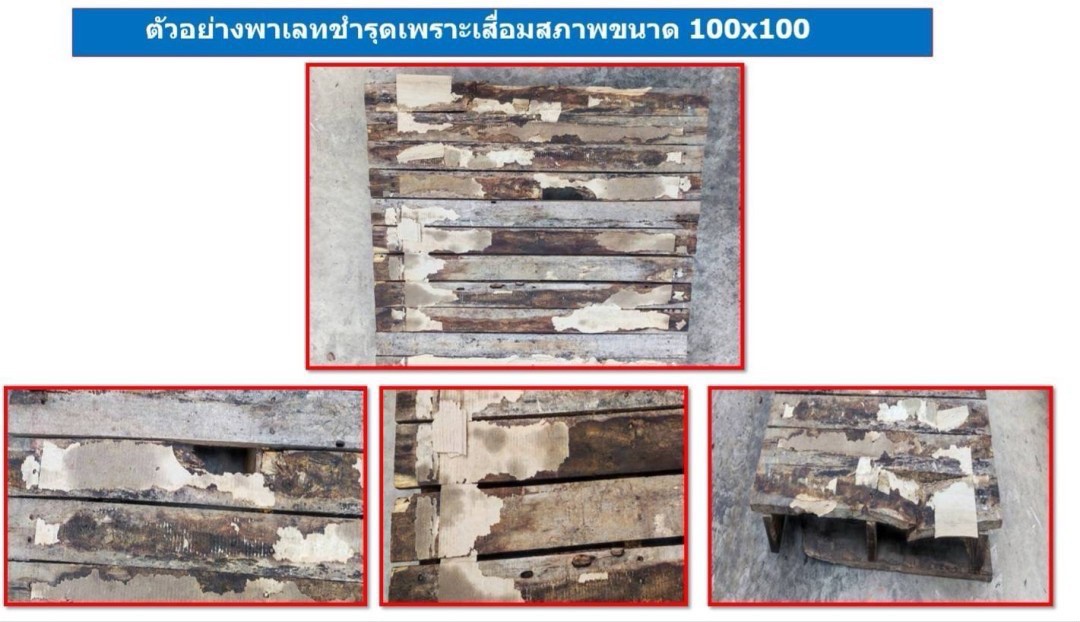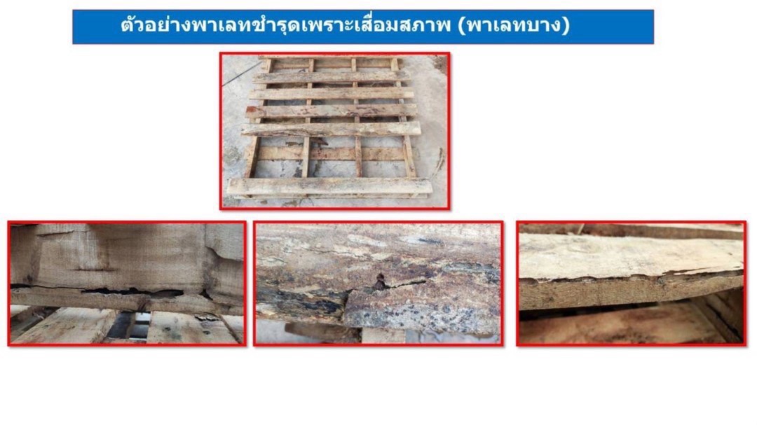 ภาพตัวอย่างพาเลทชำรุด เสื่อมสภาพ
